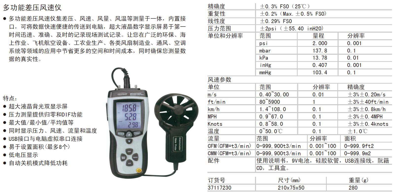 m/s 0.40~30.00 0.01 ±3%±0.20m/s