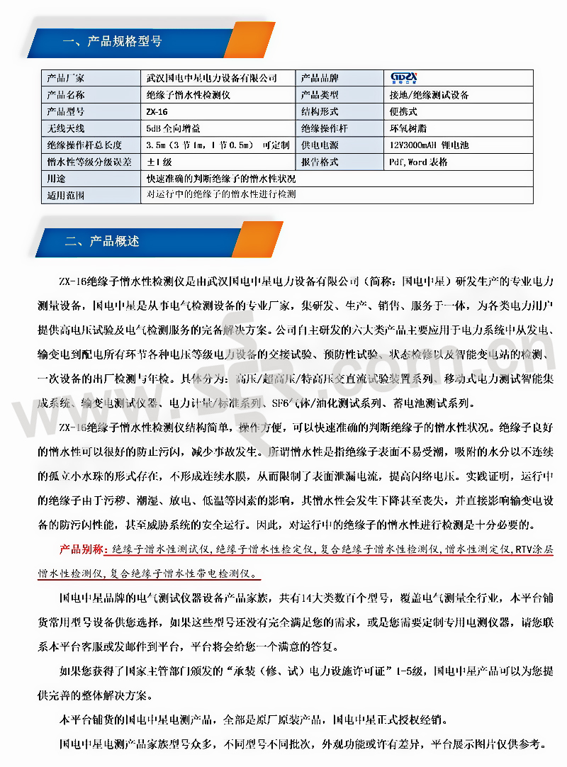 GDZX/国电中星 绝缘子憎水性检测仪 ZX-16 传输协议2.4G 图像传输距离20m 1套