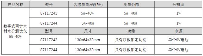 订货号 制造商型号 型号 含湿量量程 测量范围 分辨率 尺寸 功能 电源 价格 购物车
