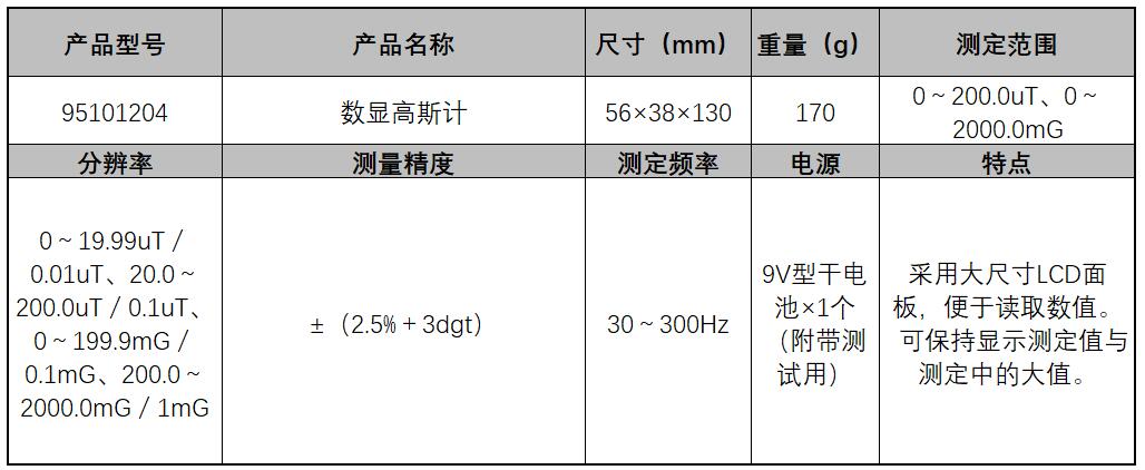 高斯计 95101204 测定范围0~200uT 0~2000mG 1个