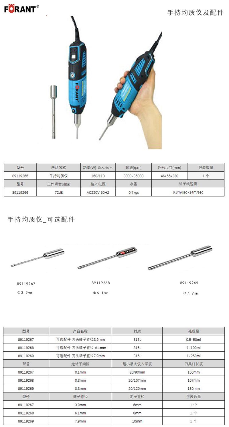 ·外观设计轻巧,手持式可单手操作 ·转速可调,数码显示转速,可控,防止飞溅 ·适用于在小容器内少量样品的均质分散 ·高质量不锈钢分散头,耐腐蚀、耐高温消毒 ·分散头拆卸方便,易于清洗 ·高速马达,寿命长 ·标配H型支架,高度角度可调,取用存放更方便规范