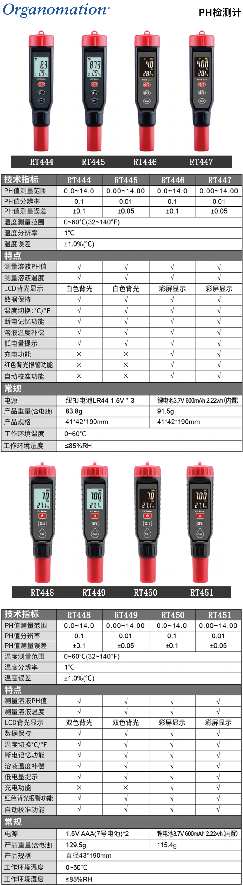 规格:  PH值测量范围:0.00~14.00pH 制造商型号:  RT447