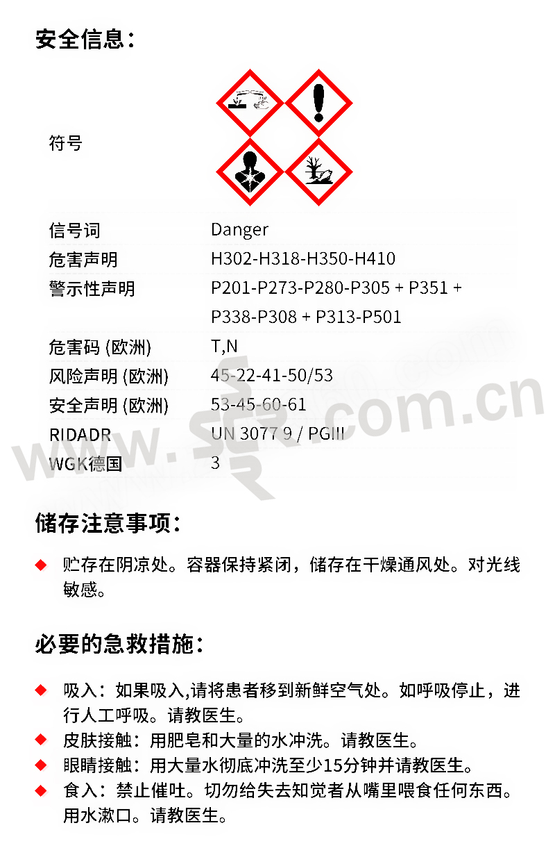 ﹒中文名称:结晶紫﹒英文名称:Crystalviolet﹒分子式:C25H30N3Cl﹒分子量:407。98﹒性状:绿色带有金属光泽结晶或深绿色结晶性粉末。为副品红的六甲基衍生物、含有少量四、五甲基的衍生物。1g溶于10ml乙醇、15ml甘油、溶于水和氯仿、水溶液和乙醇液呈紫色、几乎不溶于乙醚。中等毒、半数致死量(大鼠、经口)420mg/kg。有的商品为五甲基与六甲基玫瑰苯胺的混合物。