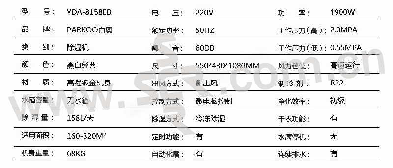 PARKOO/百奥 金刚系列 商用除湿机 YDA-8158EB 1台