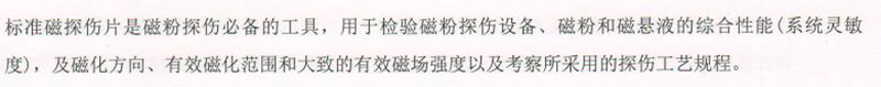 ·标准磁探伤片是磁粉探伤必备的工具,用于检验磁粉探伤设备、磁粉和磁悬液的综合性能(系统灵敏度),及磁化方向、有效磁化范围和大致的有效磁场强度以及考察所采用的探伤工艺规程。