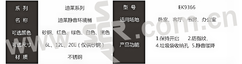 EKO 迪莱脚踏静音环境桶 9366 235×234×310mm 6L 不锈钢哑光 1个
