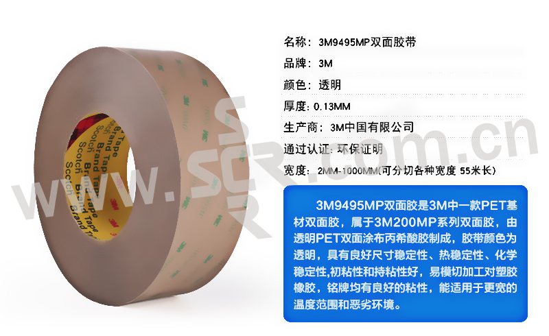 3M PET双面胶带 9495MP 透明 1372mm×55m 1支