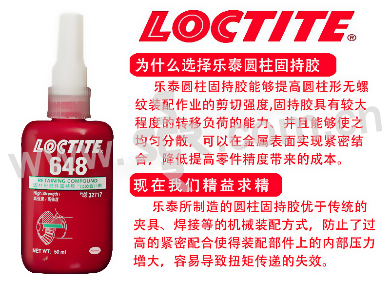 LOCTITE/乐泰 圆柱固持胶-低粘度高强度型 648 绿色 低粘度高强度 50mL 1支