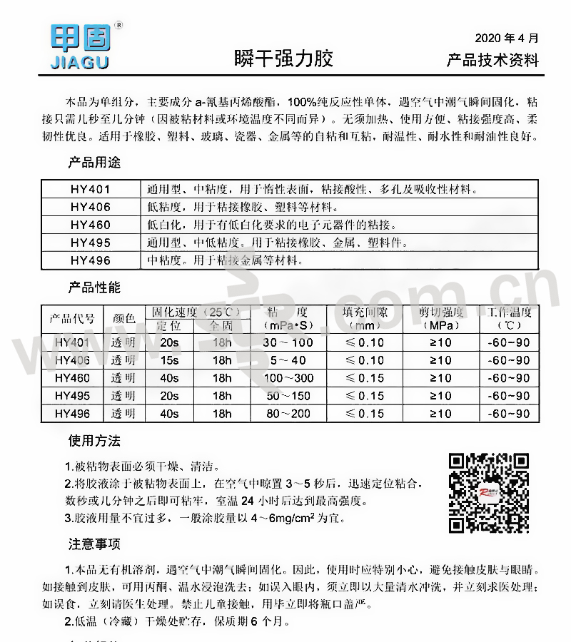 JIAGU/甲固 瞬干胶 HY406 20g 1瓶