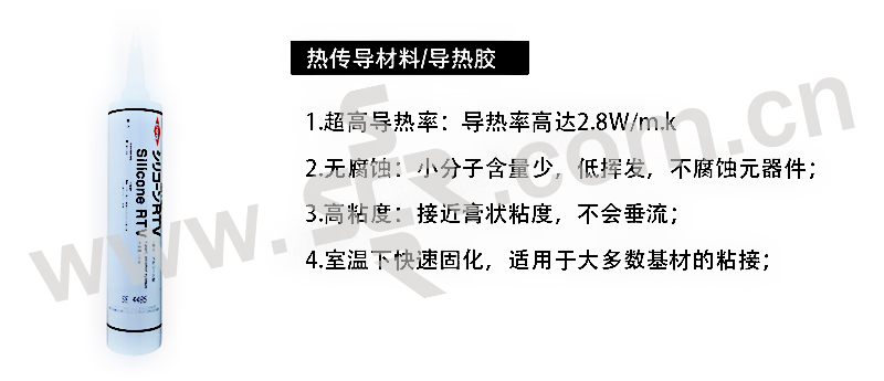 ·低挥发:固化时,气味较小;低挥发性;低毒性。·高导热性:具有高导热性能,适用于需要导热粘接的场合。·脱醇型:固化反应的副产物为醇类,对基材无腐蚀。·快速表干:提高生产效率。·通用性强:对大多数基材都有良好的粘接效果。·阻燃性能:通过UL94-V0阻燃认证。