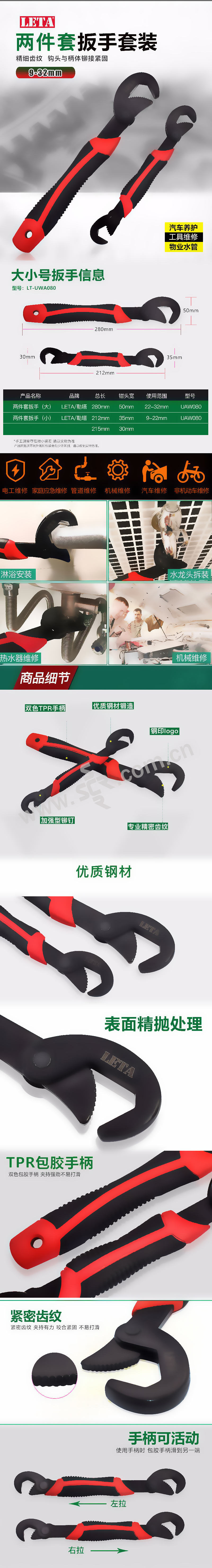 LETA/勒塔 扳手 LT-UAW080 2件装 1套