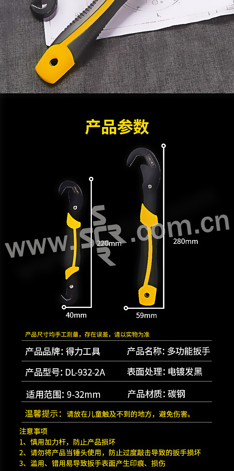 DELI/得力 三面齿多功能扳手 DL932-2A 9~22mm 23~32mm三面齿 1套