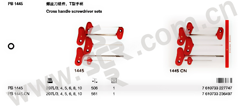 PB/瑞士PB 1445系列T型手柄螺丝刀组件 PB 1445 6件(3-10mm) 1套