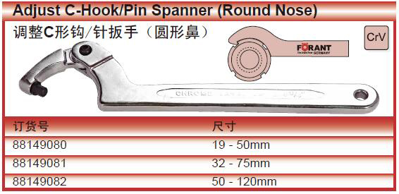 ·物美价廉,产品做工精美 ·调整C形钩/针扳手(圆形鼻)