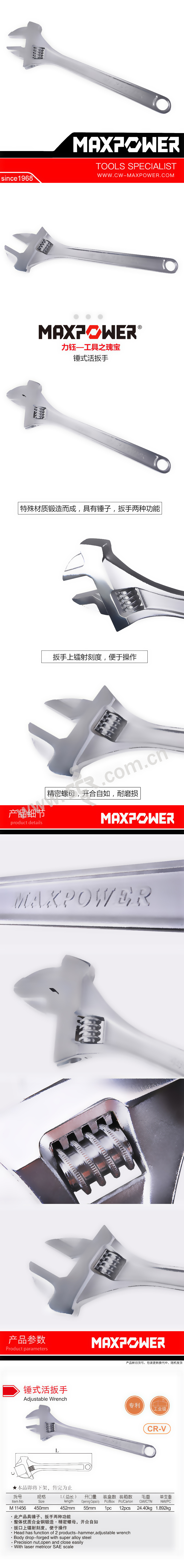MAXPOWER/力钰 锤式活扳手 M11456 450mm 1把