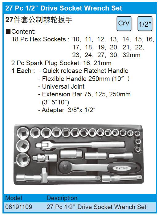 27件套公制棘轮扳手 (1/2")