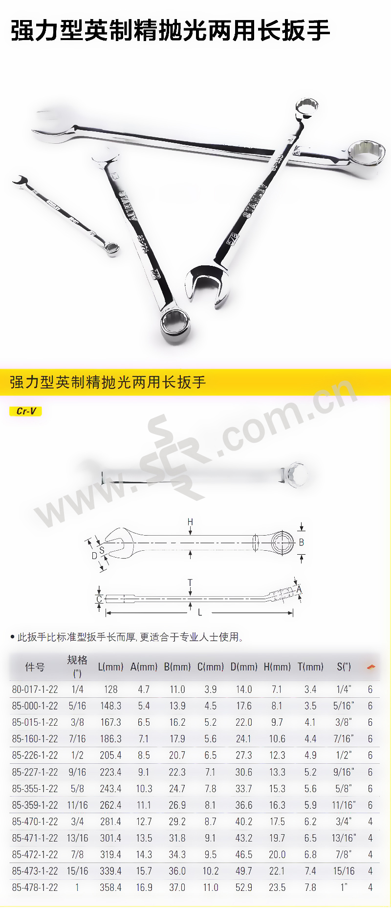STANLEY/史丹利 强力型英制精抛光两用长扳手 85-000-1-22 1把
