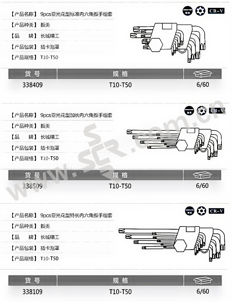 GREATWALL/长城精工 亚光花型特长内六角扳手套装 GW-338109 9件 T10-T50 1套