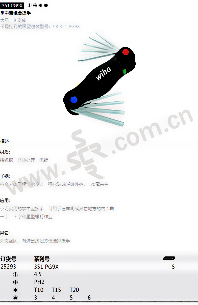 WIHA/威汉 351PG9X系列折叠式混合扳手套装 WIHA-25293 9件 4.5mm/PH2/T10-20/H3-6mm 镀铬 1套