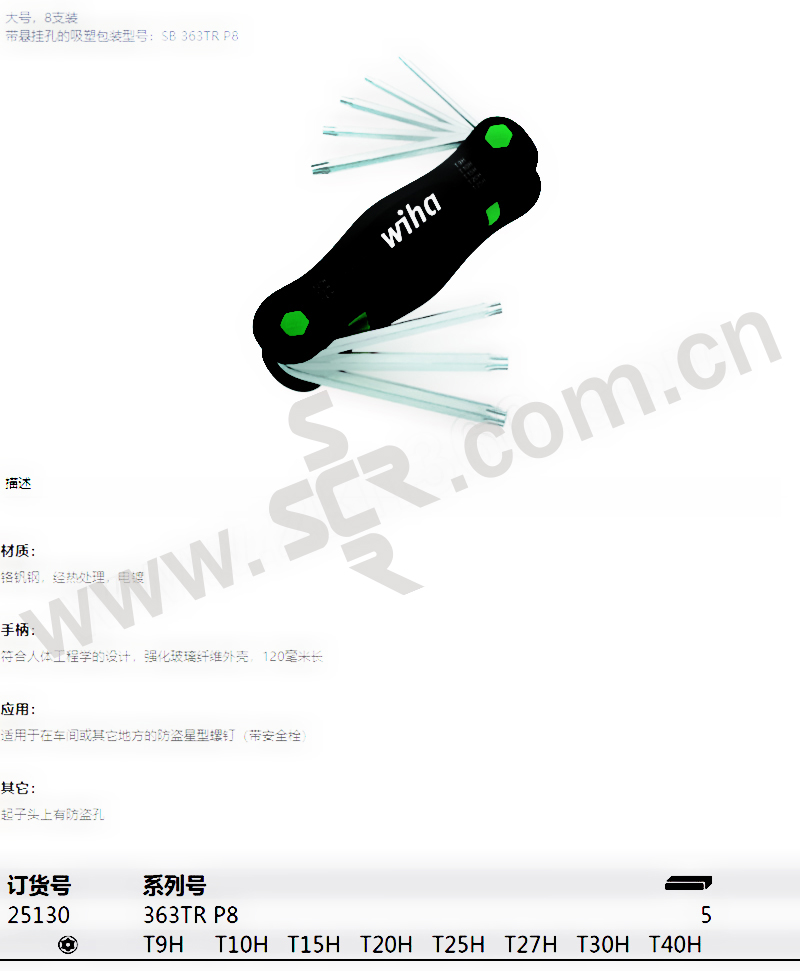 WIHA/威汉 363TRP8系列折叠式带孔星型扳手套装 WIHA-25130 8件 T9H-T40H 镀铬 1套