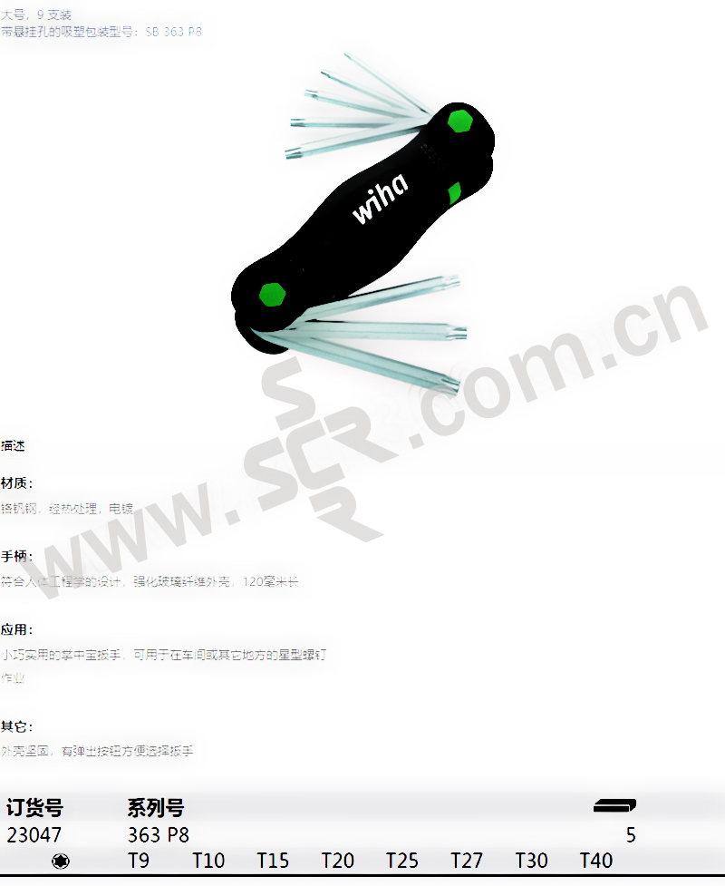 WIHA/威汉 363P8系列折叠式星型扳手套装 WIHA-23047 8件 T9-40 镀铬 1套