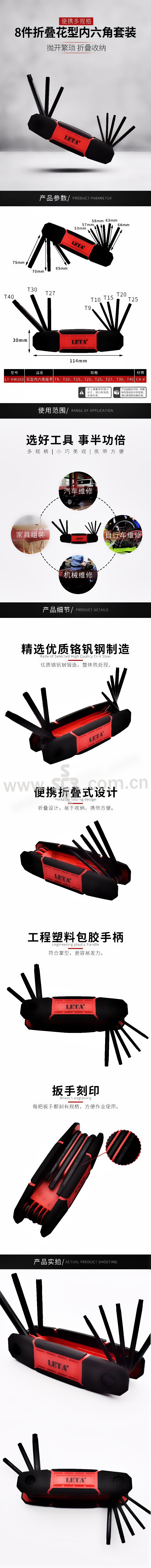 折叠式内花形扳手套装