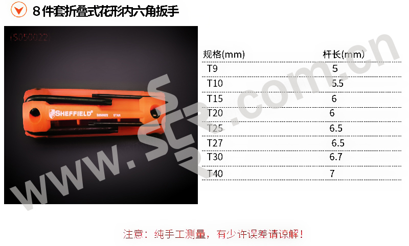 SHEFFIELD/钢盾 折叠式花形内六角扳手套装 S050022 8件 T9~T40 1套