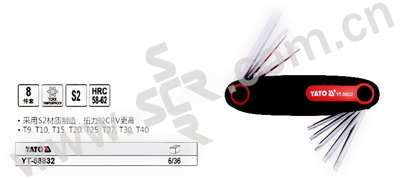 YATO/易尔拓 高档折叠中孔星型内六角扳手组套 YT-58832 8件 T9-T40 1套