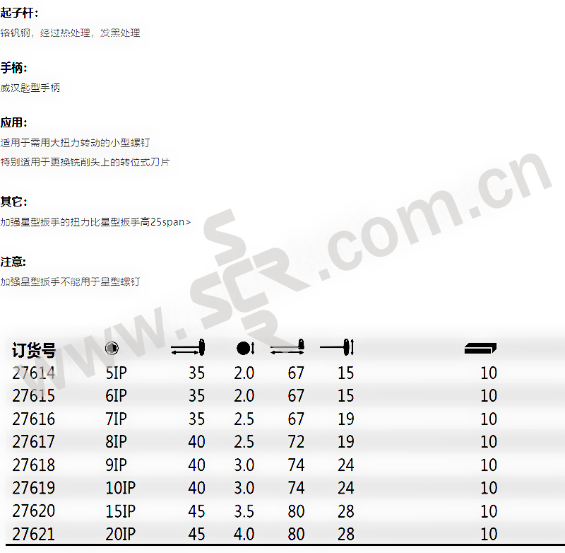 WIHA/威汉 370IP系列旗型加强星型扳手 WIHA-27614 5IP×35mm 发黑 1支