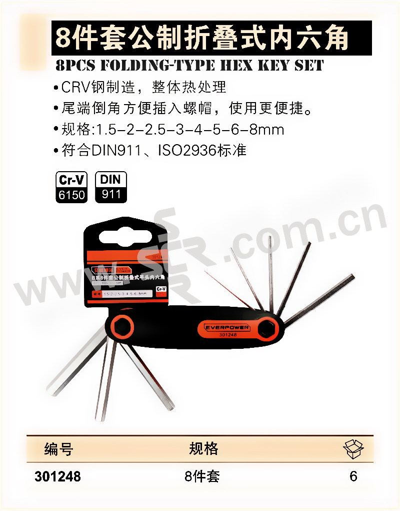 EVERPOWER/艾威博尔 8件套公制折叠式内六角 301248 1.5~8mm 8件 1套