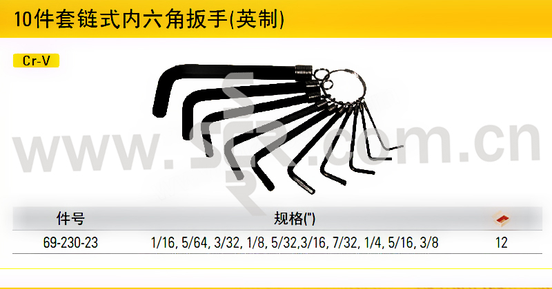 STANLEY/史丹利 英制10件套链式内六角扳手 69-230-23 1/16~3/8" 1套