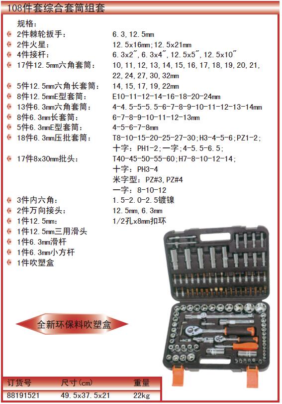 ·17件12.5mm六角套筒:10,11,12,13,14,15,16,17,18,19,20,21,22,24,27,30,32mm