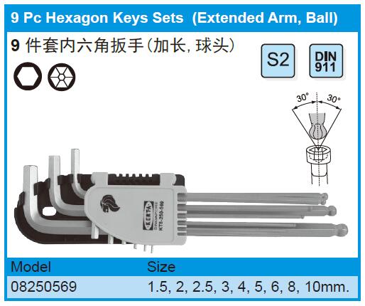 9 Pc Hexagon Keys Sets (Extended Arm, Ball)
