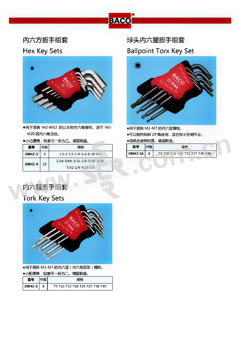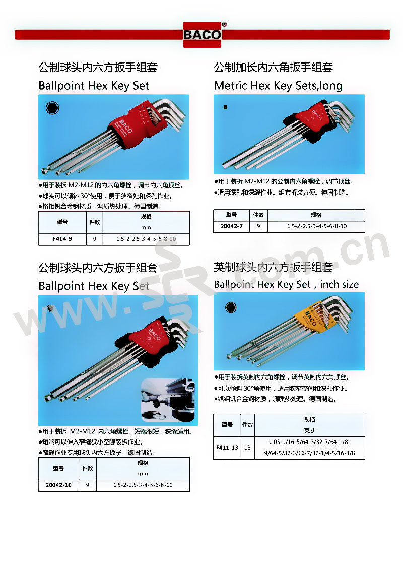 BACO/巴可 英制球头内六方扳手组套 F411-13 0.05~3/8" 镀镍 1套