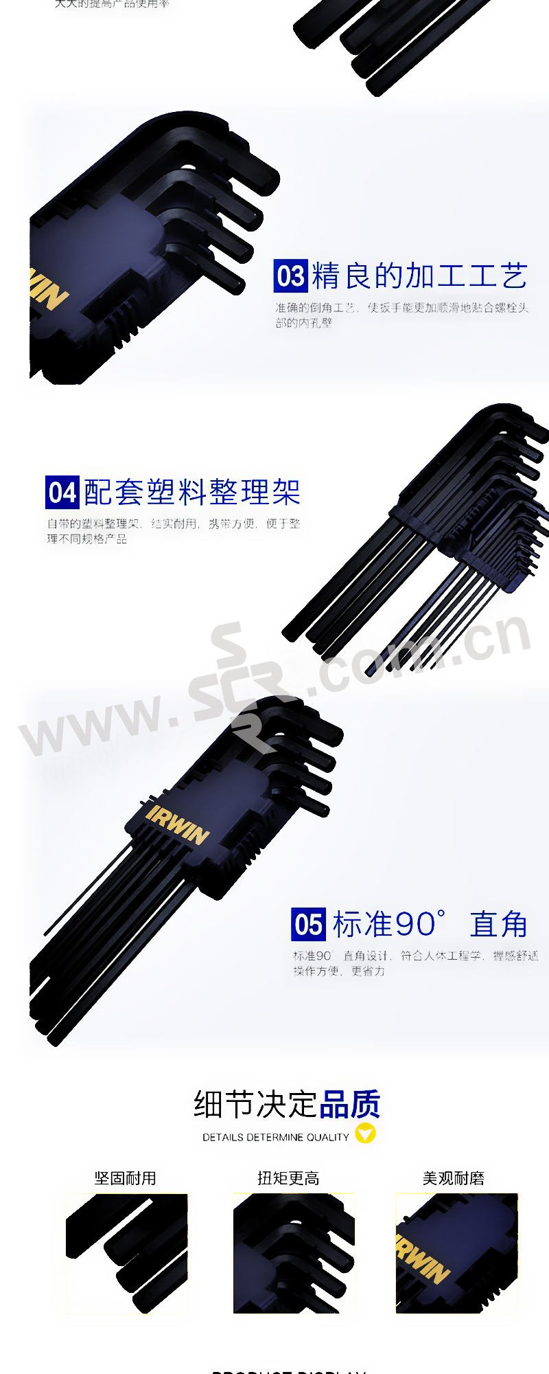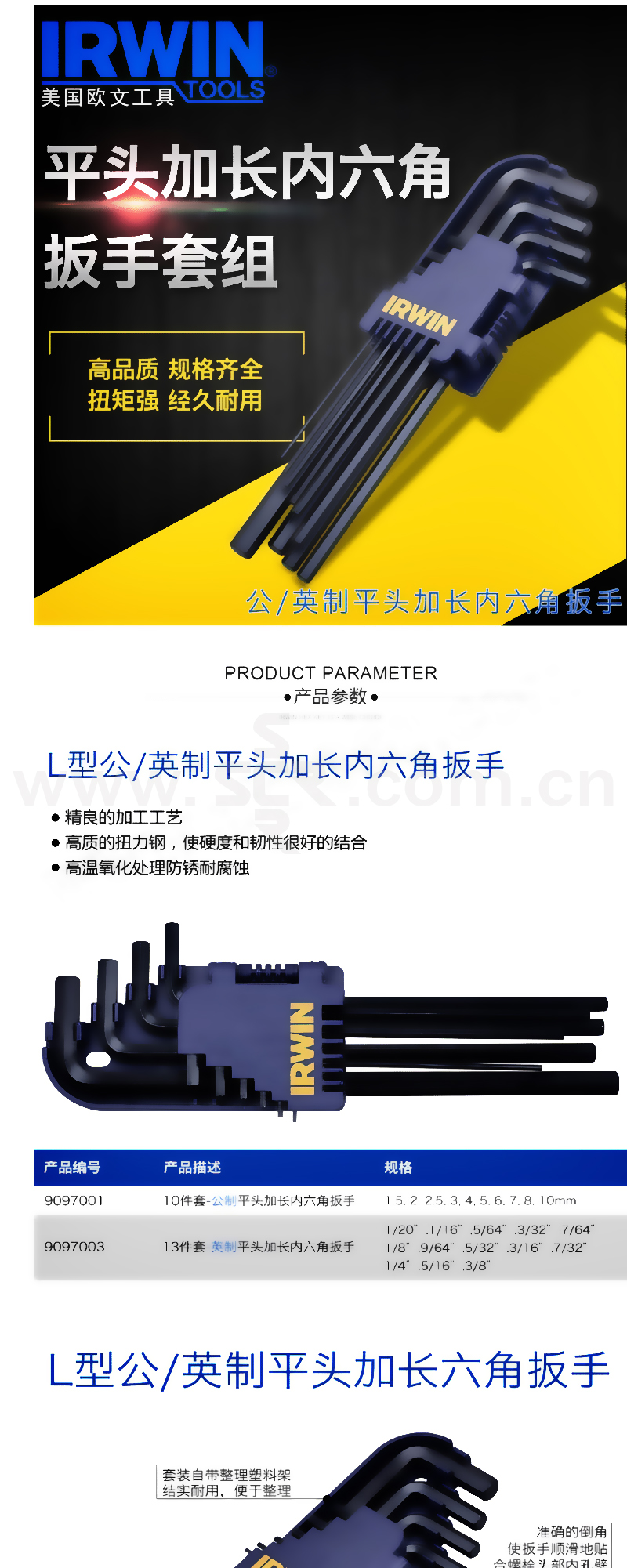 IRWIN/欧文 进口英制平头加长内六角套装 13支 1/20~3/8" 1套