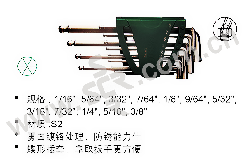 SATA/世达 英制加长球头内六角扳手组套 SATA-09102 12件 1/16"-3/8"(塑架) 1套
