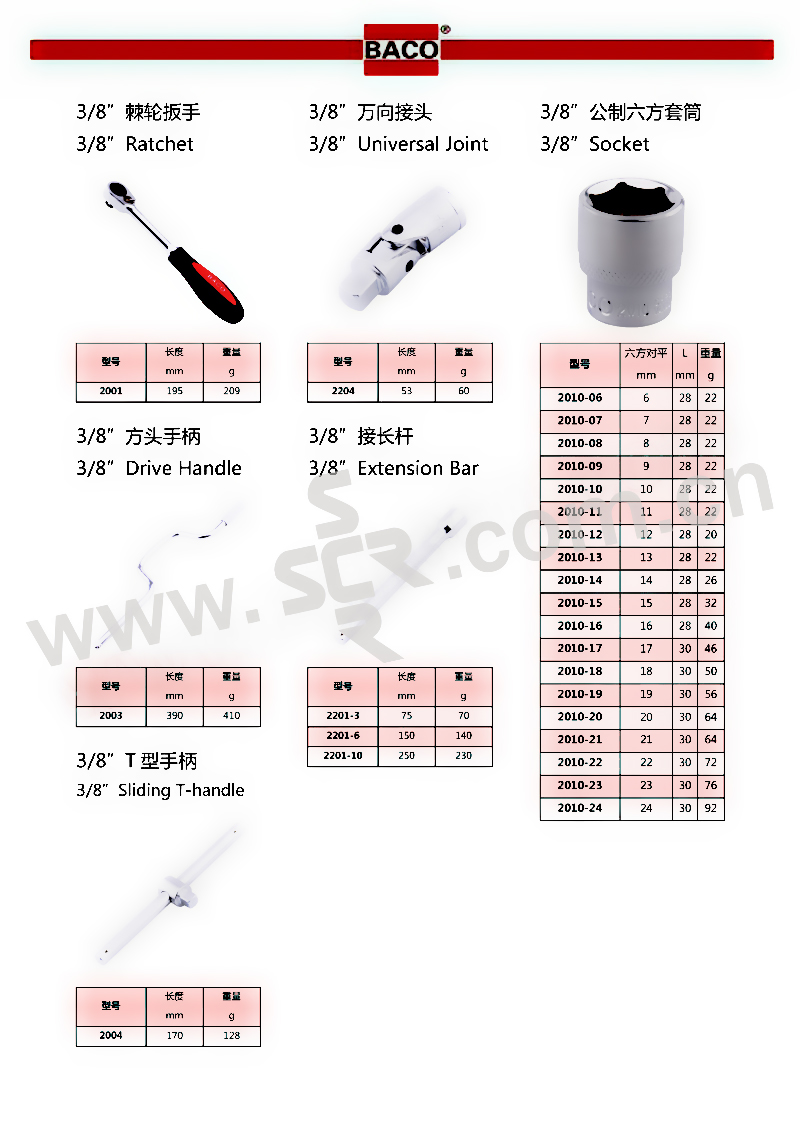 BACO/巴可 3/8"公制六方套筒 2010-6 1个