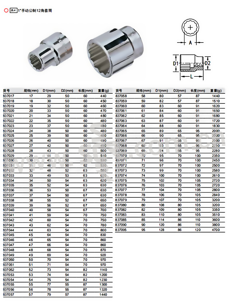 25MM系列公制十二角套筒