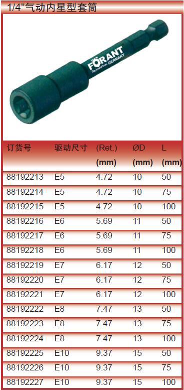 订货号 制造商型号 规格 材质 长度 驱动方孔 驱动头外径 套筒头外径 表面处理 价格 购物车