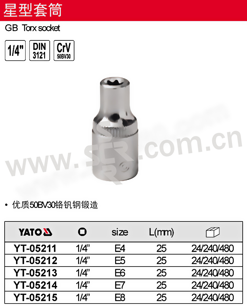 YATO/易尔拓 1/4"星型套筒 YT-05211 E4 1只