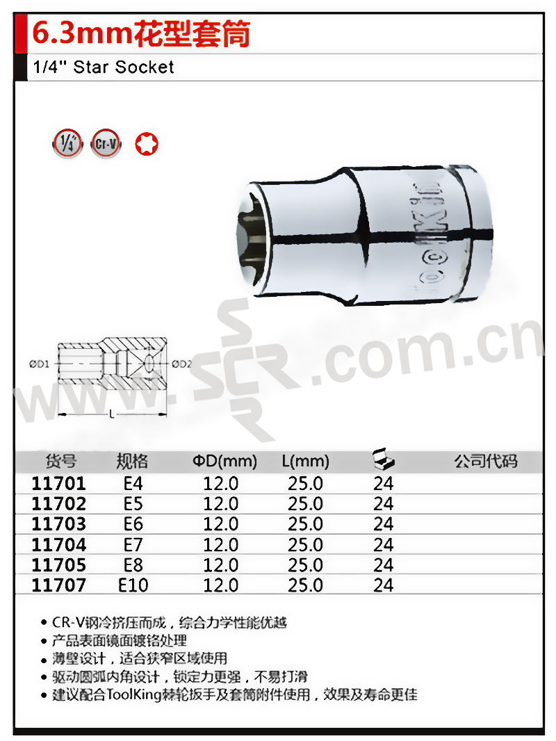 ·薄壁设计,适合狭窄区域使用,驱动圆弧内角设计,锁定力更强,不易打滑
