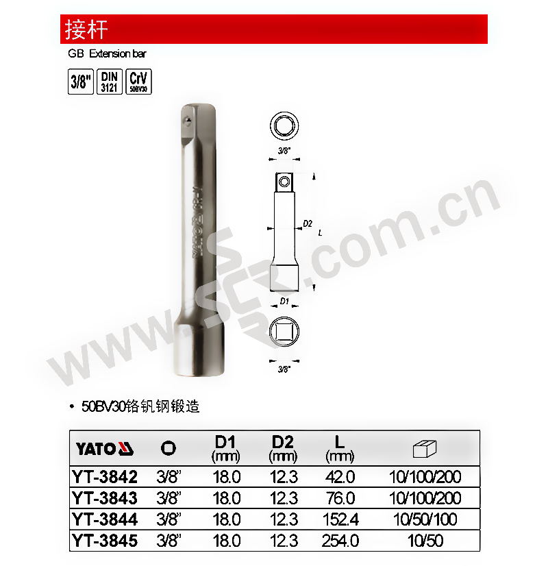 YATO/易尔拓 3/8"接杆 YT-3842 3/8"×42mm 1支