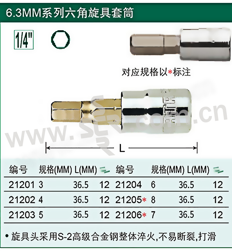 6.3MM系列六角旋具头套筒