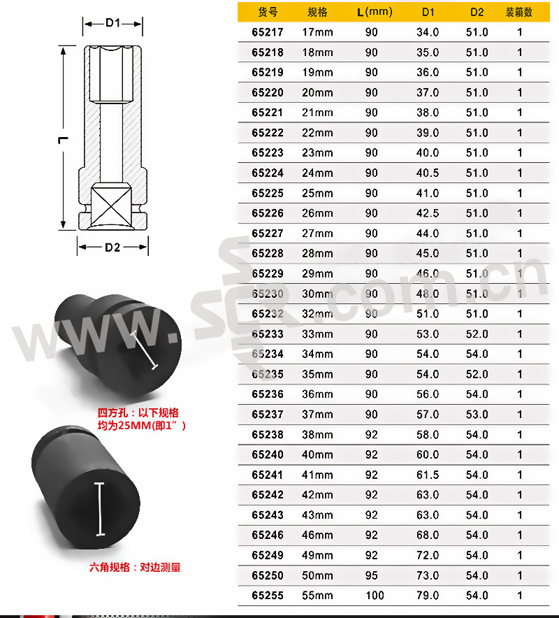 BESTIR/鹰之印 铬钼钢六角风动加长套筒 LH-65246 46mm 1个