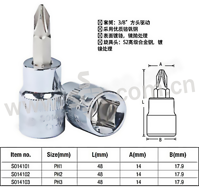 ·旋具头:S2高级合金钢,镀镍处理。