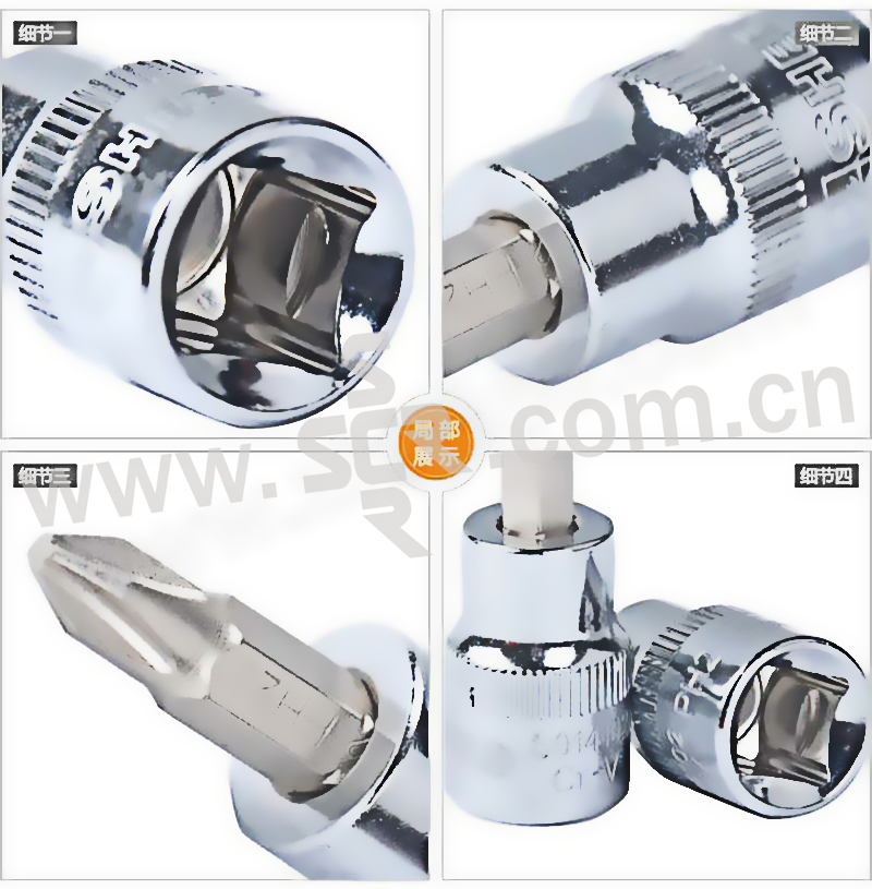 ·套筒:1/2"方头驱动,采用优质铬钒钢,表面镀铬,镜面抛光处理。