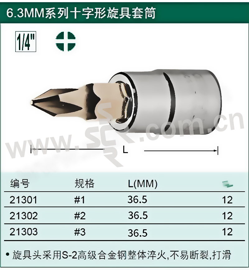 ·旋具头采用S2高级合金钢整体淬火,不易断裂、打滑。