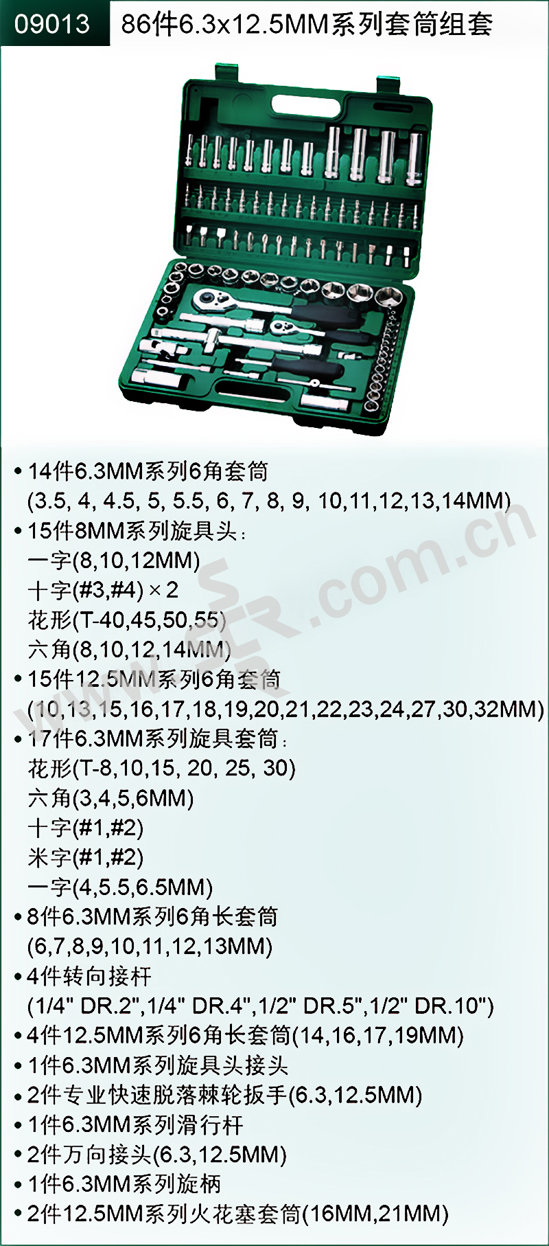 SATA/世达 6.3×12.5mm系列公制套筒组套 SATA-09013 86件 3.5~32mm(吹塑箱) 1套