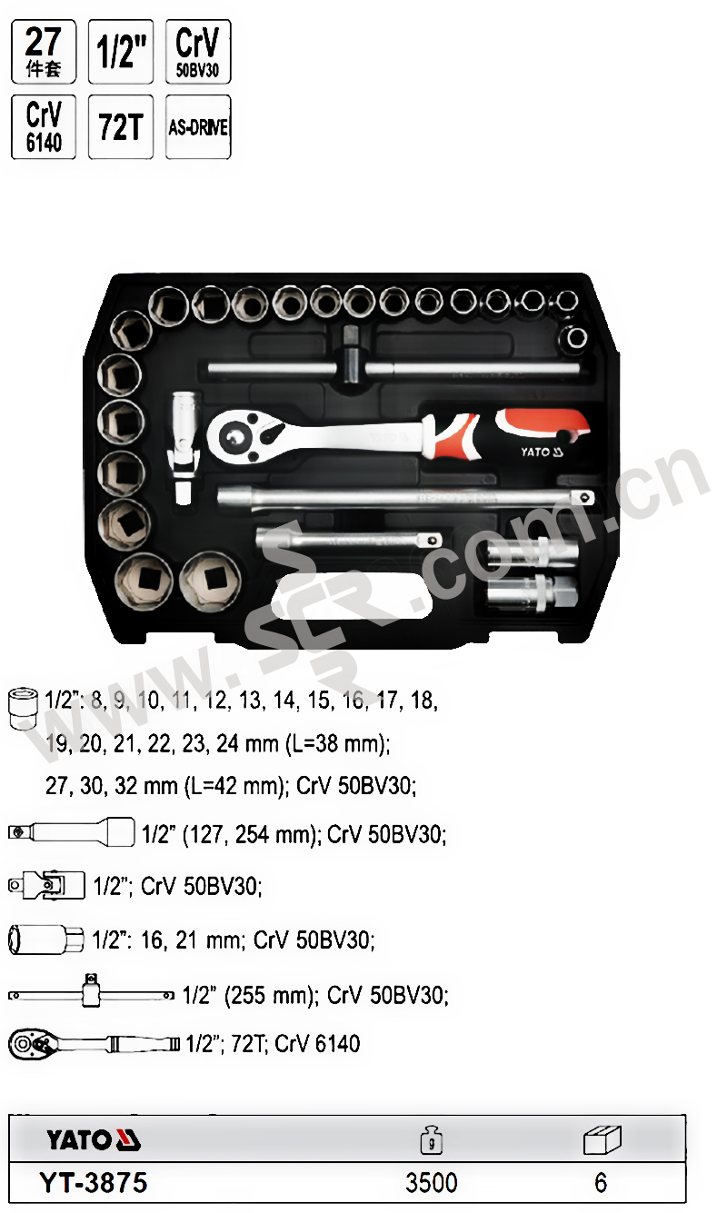 YATO/易尔拓 12.5MM系列套筒扳手组套(27件) YT-3875 27件 8-32mm 1套