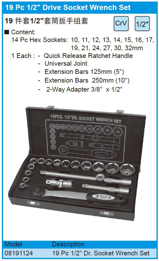 19件套1/2"套筒扳手组套